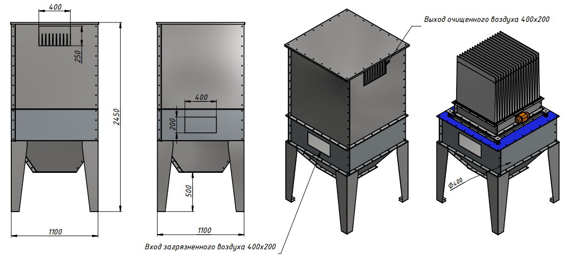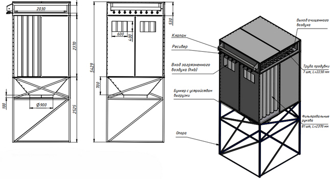 Для этого нами были разработаны модули на базе рукавных фильтров производительностью от 5000 до 20 000 м3/ч с системой обратной продувки или системой вибровстряхивания.