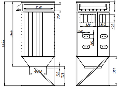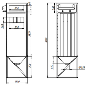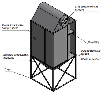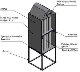 Рукавный фильтр для промышленности (дополнительно комплектуется вентилятором)
