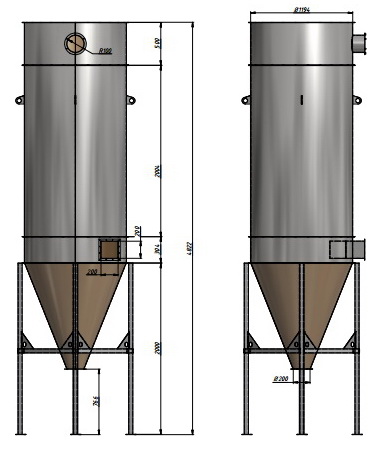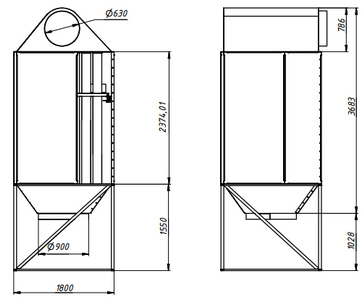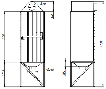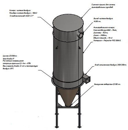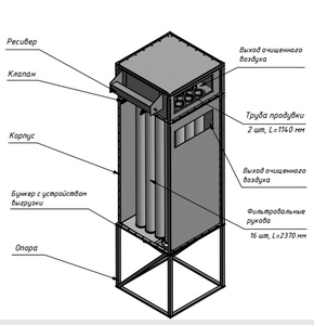 Рукавный фильтр для промышленности (дополнительно комплектуется вентилятором)